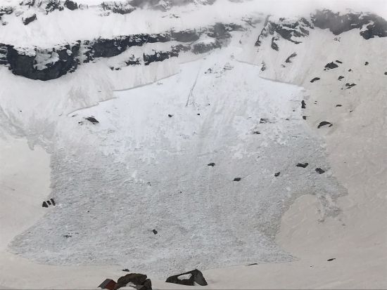 Apa rezultata din topirea zapezii s-a infiltrat , pe sub stratul de zapada , pe lespedea de stanca din diedru , declansand o avalansa considerabila.