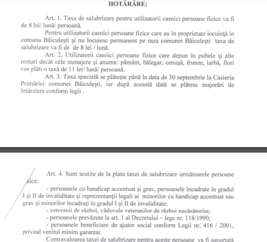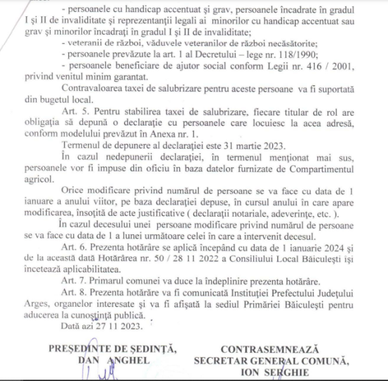Hotararea nr 61 din 27.11.2023 – Hotarare privind stabilirea taxei speciale de salubrizare pentru utilizatorii casnici persoane fizice, pentru anul 2024