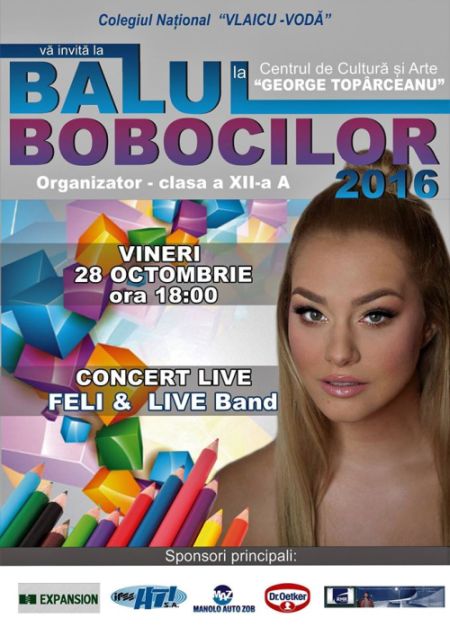 Balul Bobocilor de la Colegiul National „Vlaicu Voda” se va desfasura si in acest an la Centrul de Cultura si Arte „George Topîrceanu”, pe data de 28 octombrie, incepand cu ora 18:00. Pretul invitatiei este de 25 lei.