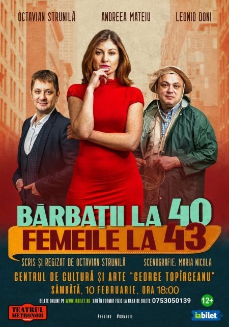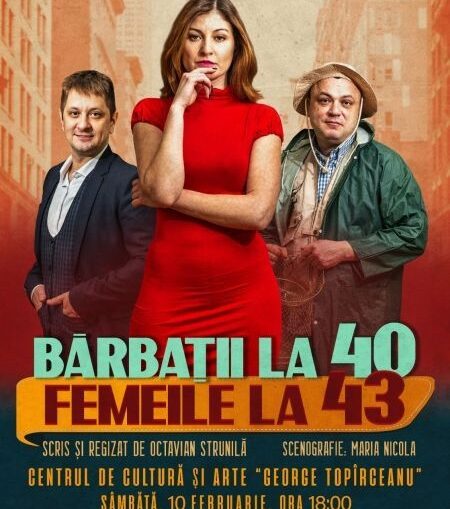 La început de an avem şi teatru. BĂRBAŢII LA 40, FEMEILE LA 43 este un spectacol despre criza prin care trec aproape toate cuplurile cel puțin o dată în viață. Dacă despre bărbați este bine știut faptul că “middle age crisis” se manifestă la 40 de ani, despre femei încă se discută. La 30, la 35 sau la 43.