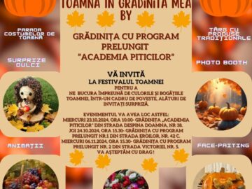 ”Toamna în grădina mea”se va organiza la Grădinița Academia Piticilor joi, 20 octombrie 2024, de la ora 15.30.
