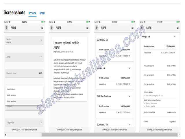 ANRE a lansat aplicația mobilă care permite accesul la comparatoarele de oferte tip de furnizare a energiei electrice si gazelor naturale, precum și la informații din domeniul energiei. Aplicația este gratuită şi disponibilă pentru orice utilizator care are acces la magazinele Google Play si Apple Store.