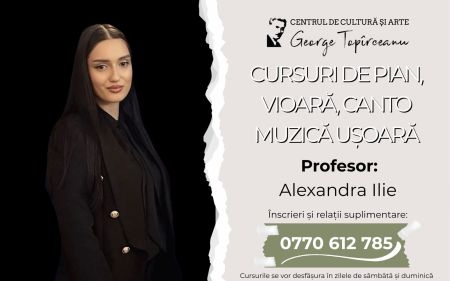 În week-end, au început cursurile de canto, pian și vioară la Centrul de Cultură și Arte „George Topîrceanu”. 10 copii și adolescenți au fost elevii Alexandrei Ilie, noul nostru colaborator. „Răbdarea, entuziasmul și dragostea pentru copii mă definesc ca profesor, iar scopul meu este să inspir fiecărui elev plăcerea de a descoperi latura minunata a muzicii”, spune Alexandra.