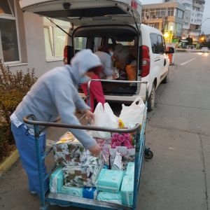 Pentru fiecare mămică au fost randuite pachete cu produse alimentare, apa, fructe, produse de îngrijire personală, iar personalul medical a primit câte o icoana cu chipul Sfântului Nectarie.