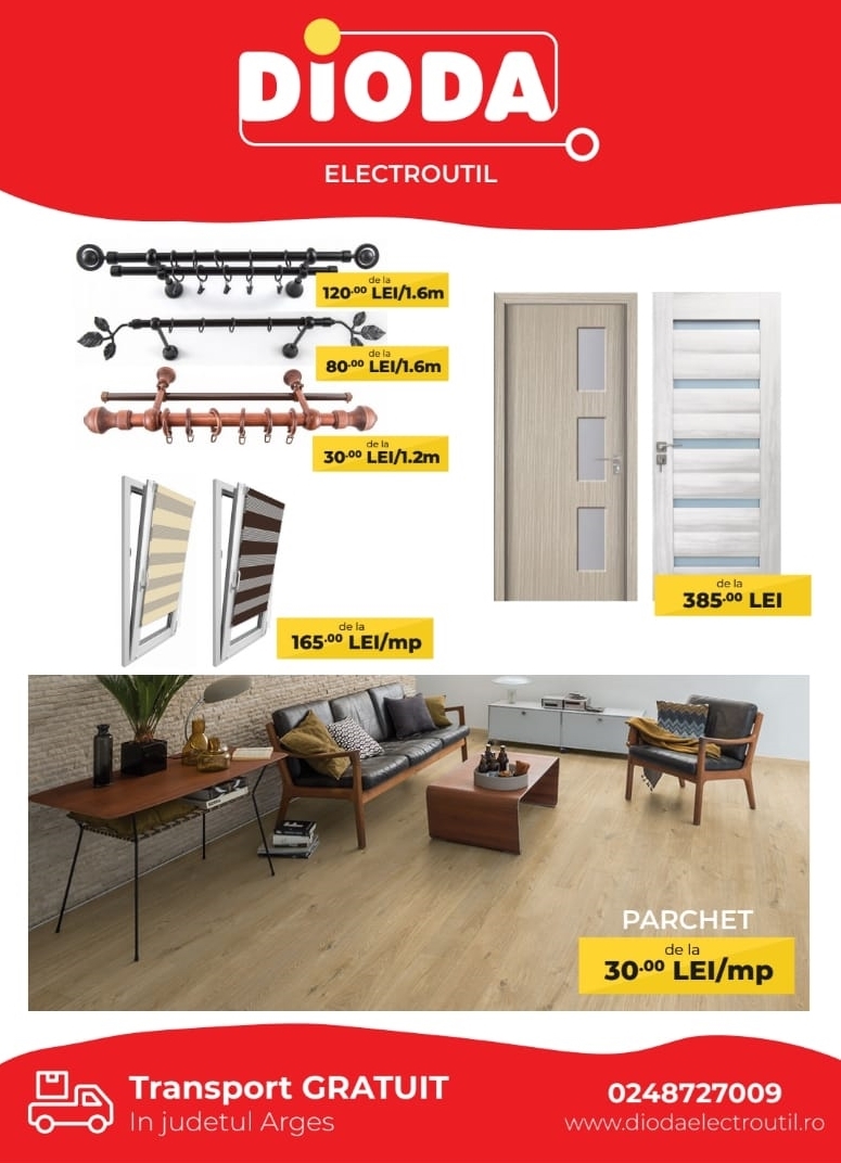 Ofertele Dioda Electroutil Curtea de Argeș: se asigură transportul gratuit în județul Argeș. Pentru a vedea întreaga ofertă vă așteptăm la magazinul situat pe strada Traian, nr. 8, vizavi de magazinul Făgăraș sau online, pe diodaelectroutil.ro