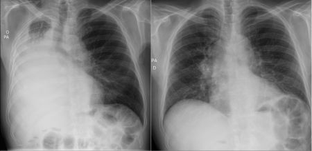 Cazul de fata este al unui pacient de 76 de ani, diagnosticat recent cu un carcinom pulmonar cu celule mici, adus la camera de garda cu insuficiență respiratorie acută. Radiografia toracică evidenția atelectazie masivă a plămânului drept — o situație critică, cu risc vital imediat. Am decis inițierea promptă a chimioterapiei. La 72 de ore, controlul radiologic a arătat reexpansiune pulmonară semnificativă, cu ameliorare clinică evidentă. O intervenție rapidă, corect indicată, a transformat o urgență majoră într-o situație stabilizată.