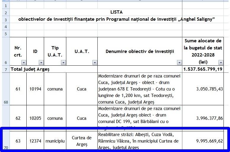 În ultimii ani Primăria Curtea de Argeș a reușit să atragă fonduri externe din toate sursele de finanțare posibile și nu a pierdut ocazia să obțină fonduri și prin programul național al Ministerului Dezvoltării. Astfel, municipiul Curtea de Argeș va beneficia de finanțare în valoare de 9.995.669,62 lei pentru asfaltarea străzilor Albești, Cuza Vodă și Râmnicu Vâlcea.