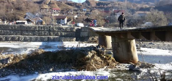 Până atunci, cei peste 400 locuitori din cătunul Bocănita folosesc pe riscul lor podul, iar cu maşinile trec direct prin râu.