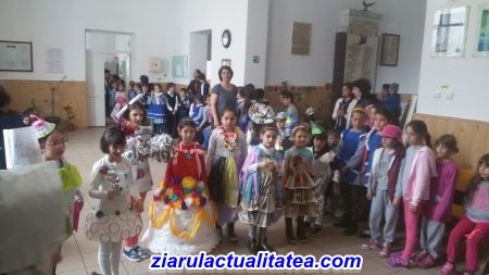„Multă veselie și culoare în școala noastră. Copiii claselor 0-IV (200 elevi) au participat la „Parada costumelor ECO” – carnaval cu costume din materiale reciclate. Cei 80 de copii au fost îmbrăcați în costume din materiale reciclate. Carnavalul a fost organizat de elevii clasei a VI a A. Mulțumim părinților și elevilor pentru implicare . Au fost niște costume minunate!”Coordonator, prof. Sorina Știrboiu