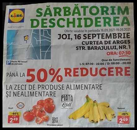 Cu ocazia deschiderii, primii clienți vor beneficia de reduceri consistente la zeci de produse alimentare și nealimentare. Reducerile sunt și de 50% la produse, însă LIDL anunță că toate sunt puse la vânzare în stoc limitat!