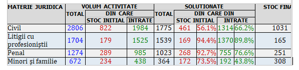 Am subliniat anterior că numărul redus de magistrați a condus la desființarea în cursul anului 2020 a acestor complete specializate, astfel că, în prezent, fiecare judecător soluționează deopotrivă cauze penale, civile, de minori şi familie şi litigii cu profesioniștii.