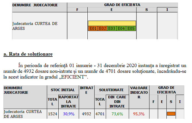 În consecinţă, la acest indicator, Judecătoria Curtea de Argeş s-a încadrat în gradul „FOARTE EFICIENT”.