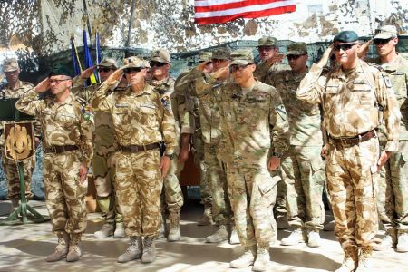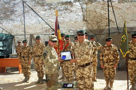 În data de 2 iunie s-a desfăşurat, la locul de dispunere a Elementului Naţional de Sprijin, o ceremonie prilejuită de acordarea Emblemei de Onoare a Statului Major General unor militari din Armata Statelor Unite ale Americii.