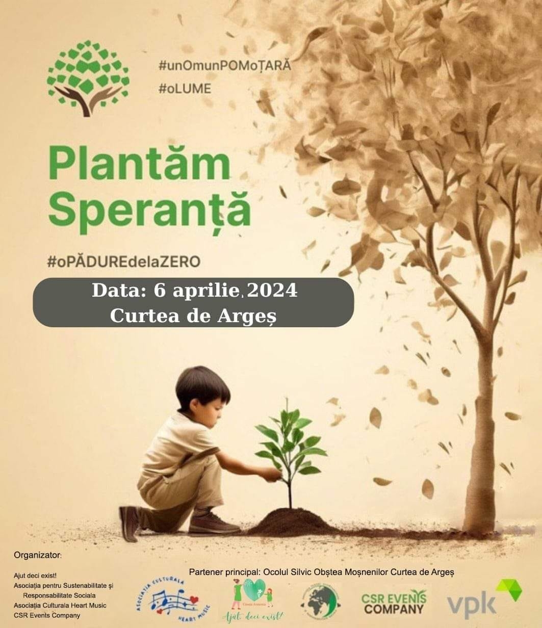 Pe 6 aprilie, Asociația „Ajut deci exist”, cu sediul la „Căsuța Armonia” , împreună cu „Plantăm Speranță” , în parteneriat cu Ocolul Silvic Curtea de Argeș şi Obştea Moşnenilor, alături de voluntari din companii, instituţii, ong-uri, elevi, studenţi, vor planta o Pădure de la Zero, pe o suprafață de trei hectare la Curtea de Argeș. Acțiunea se va desfășura la Curtea de Argeș, punct Zăvoi-Deversor, UP I Curtea de Argeș, u.a. 229 (zona târg săptămânal).
