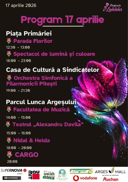 🌷 Eveniment organizat de: Primăria și Consiliul Local Pitești, prin Salpitflor, SPEP, Centrul Cultural Pitești, Filarmonica Pitești și FC Argeș