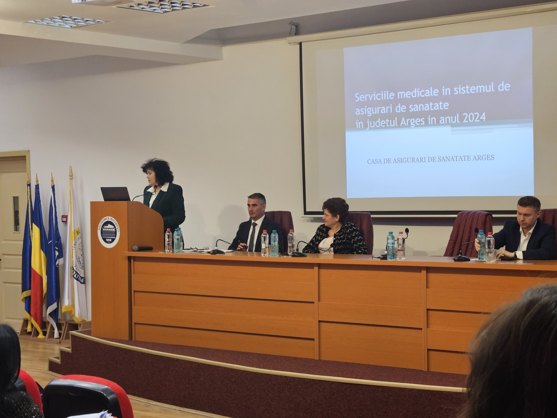 Casa de Asigurări de Sănătate ARGES în parteneriat cu Universitatea Națională de Știință și Tehnologie POLITEHNICA București – Centrul Universitar Pitești, a organizat vineri, 14 februarie 2025, evenimentul Provocare și inovație în sistemul de sănătate -2025, la care si-au făcut prezenta Președintele CNAS, dr. Valeria Herdea, Directorul DSP Arges, dr. Sorina Honțaru, Presedintele Colegiului Medicilor Arges, dr. Cătălin Ușurelu, Prorectorul Universității Politehnica Bucuresti, Centrul Universitar Pitesti, dl. Tudor Petrescu, manageri ai unităților sanitare din județ, președinți ai Asociaților profesionale din sistemul medical, reprezentanți ai Organizațiilor Nonguvernamentale Argeș, furnizori de servicii medicale, cadre universitare, profesioniști/ specialiști din sistemul medical, etc.