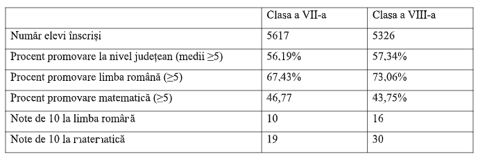 În urma afișării rezultatelor la probele scrise din cadrul simulării evaluării naționale pentru elevii clasei a VIII-a, cu participarea elevilor clasei a VII-a, vă transmitem datele statistice aferente.