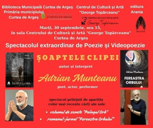 Săptămâna viitoare vă aşteptăm la „Șoaptele Clipei”– Spectacol poetic multimedia cu Adrian Munteanu