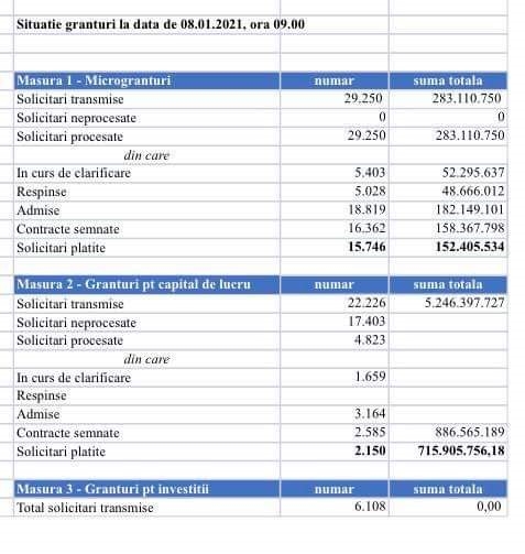 Astfel, pe prima măsură a fost avansată doar jumătate din suma solicitată de firme, pe a doua măsură mai puțin de 15%, iar pe a treia măsură niciun leu (această măsură neavând încă o sursă de finanțare; în prezent se caută finanțarea din fonduri europene). Acum este clar de ce economia românească a scăzut cu 6% în ritm anual, după datele din trimestrul 3: pentru că banii anunțați ca ajutor pentru firme nu au fost, de fapt, alocați și plătiți firmelor! România este singura țară din UE care nu și-a ajutat firmele în această pandemie. Este una din marile „realizări” ale guvernului Orban.