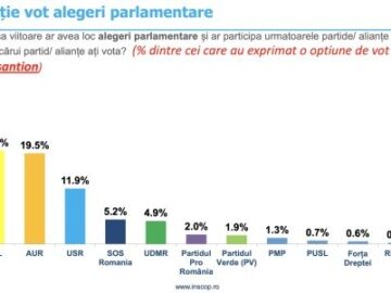 Ultimul sondaj INSCOP, cu privire la intenția de vot la alegerile parlamentare, arată că la intenție de vot, PSD ar lua 30,2%, urmat de PNL, Citește mai mult