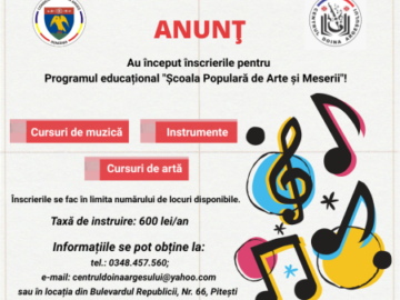 Centrul “Doina Argeșului”: Au început înscrierile pentru Programul educațional „Școala Populară de Arte și Meserii”!