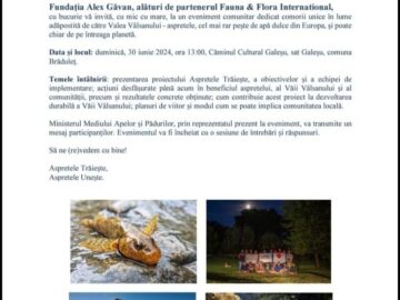 Duminică, 30 iunie, orele 13:00, la Căminul Cultural Galeşu, va avea loc prezentarea proiectului „Aspretele Trăiește”, de către Fundația Alex Găvan, alaturi de partenerul Fauna&Flora.