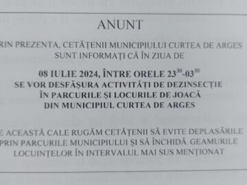 Primăria Curtea de Argeș: Luni se face dezinsecție în parcuri și la locurile de joacă