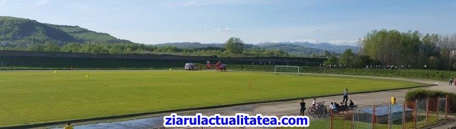 Stiri Curtea de Arges: -VIDEO- Elicopterul SMURD a aterizat la stadionul din Curtea de Argeș să preia un pacient cu infarct