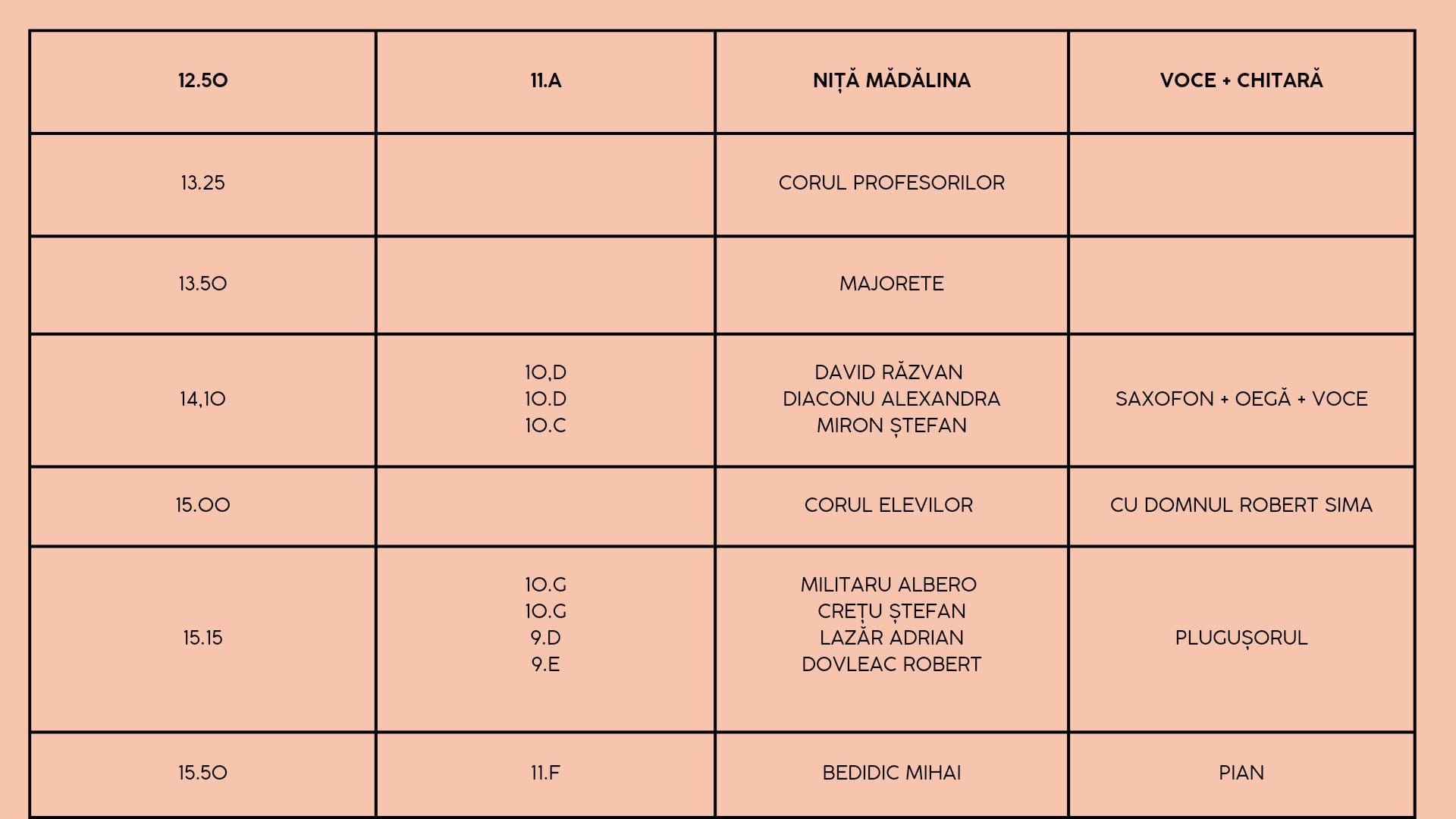 •Momente artistice de excepție, susținute de echipa de majorete, echipa de teatru, corul profesoral CNVV etc.
