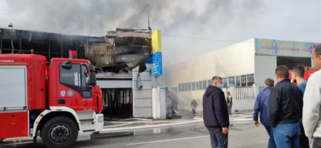 ÎN aceste momente pompierii încearcă să stingă focul de la service, mai ales că se poate extinde și la fabrica din apropiere, IPEE ATI.