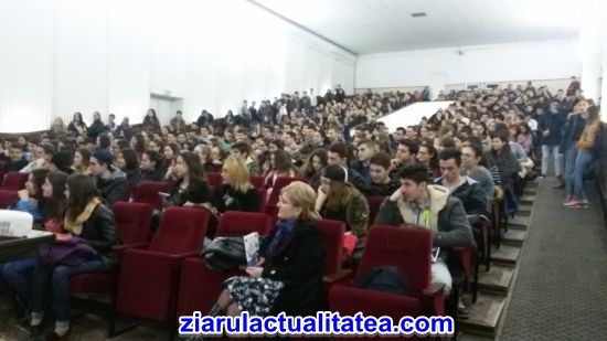 La întâlnirea organizată la Centrul de Cultură au participat elevi de la toate liceele din municipiu, iar din partea UPIT, chiar rectorul, dr. Dumitru Chirleşan.